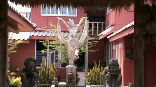 ist auf Pfählen , weit in die Bucht hinein gebaut.