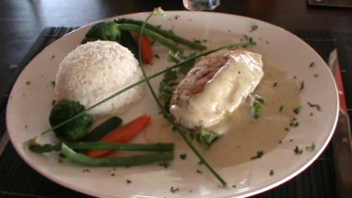 Gegessen habe ich, für ein Fischerdorf nicht gerade übliches Hähnchenfilet.