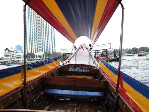 In einem Longtail Boot starten wir unsere Fahrt auf dem Chao Phraya