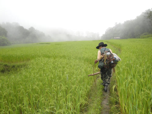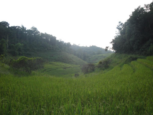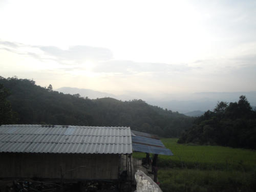 Am nächsten Morgen um 7 Uhr auf dem Weg ins nächste Dorf.