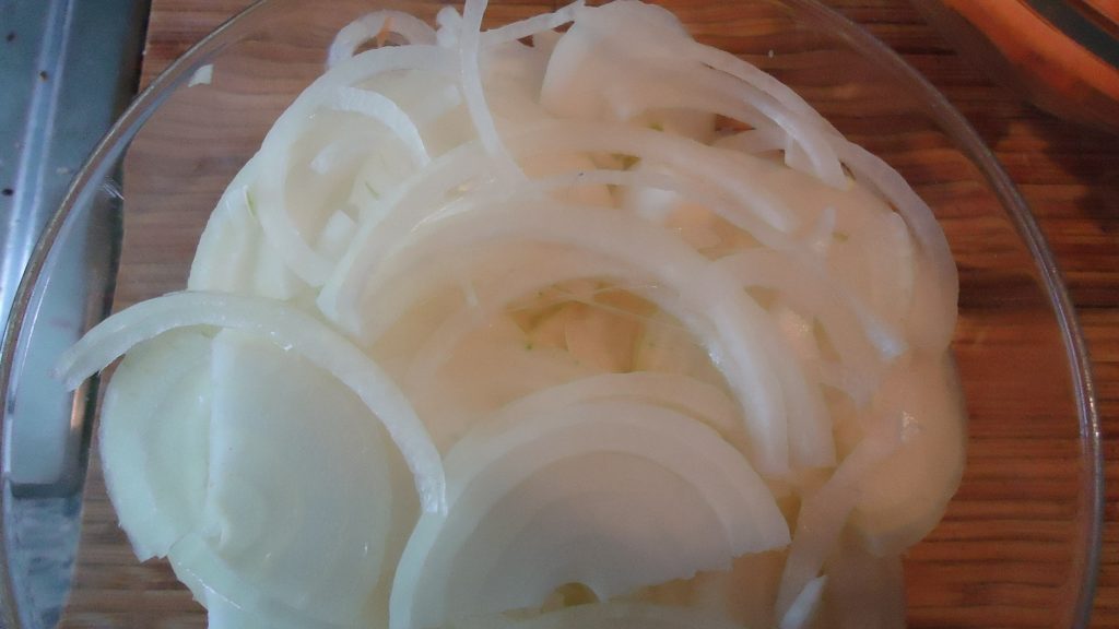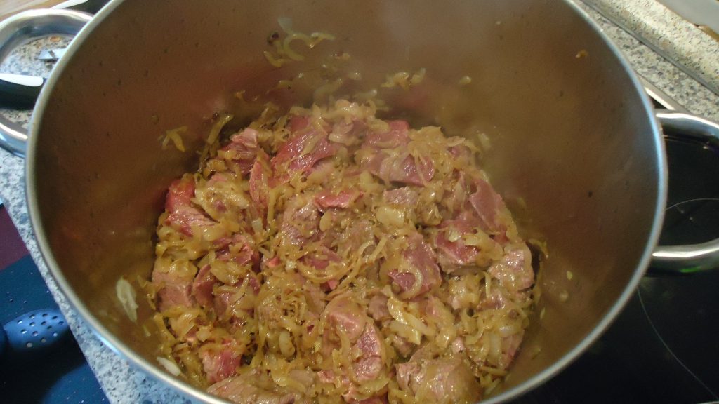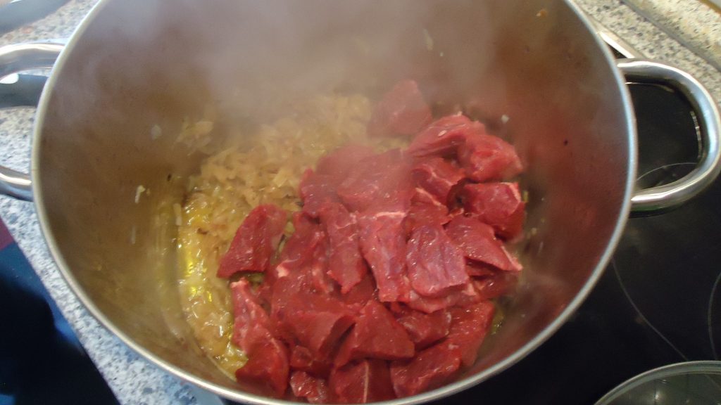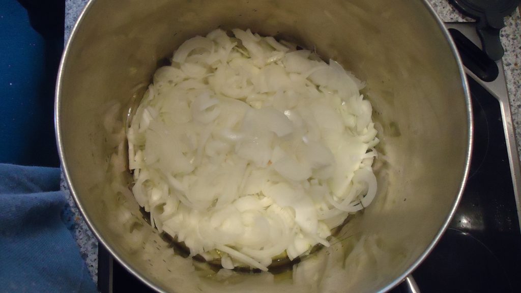 Zwiebeln in einem Topf mit Öl scharf anbraten.