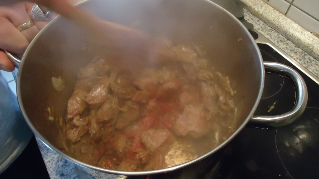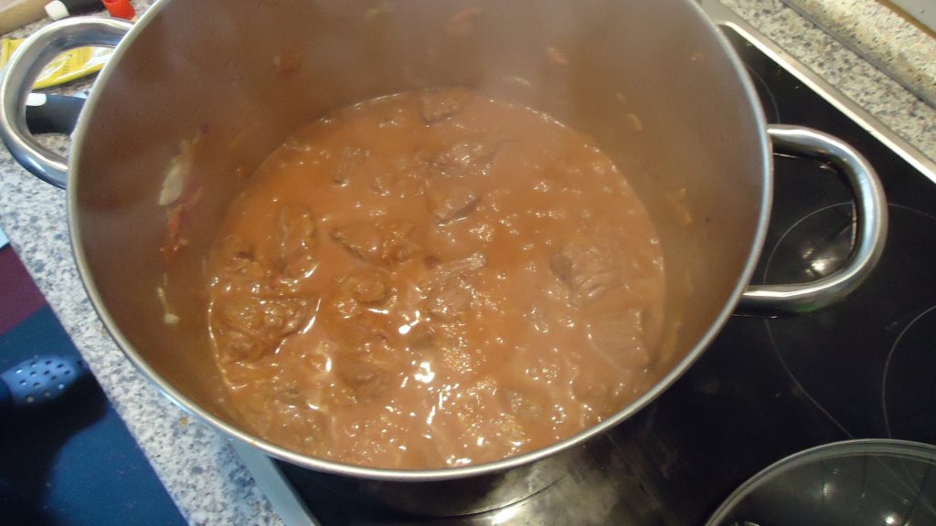 Wenn die Soße schön sämig und das Fleisch weich ist servieren.