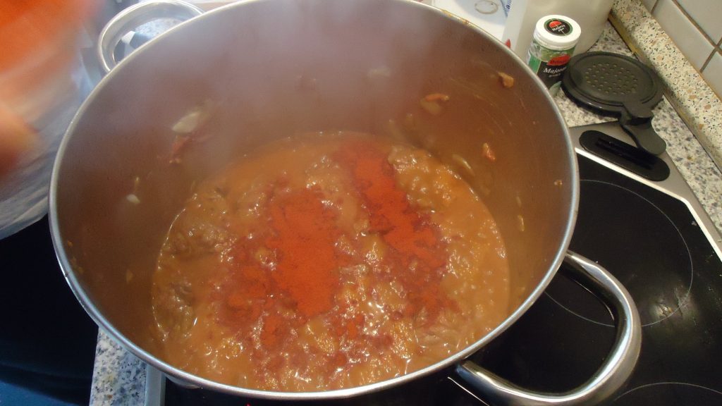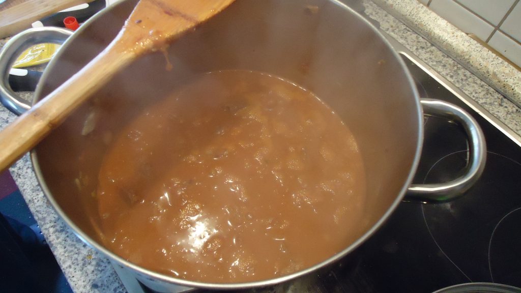 1,5 l Rinderbrühe eingießen und aufkochen lassen