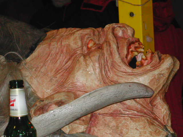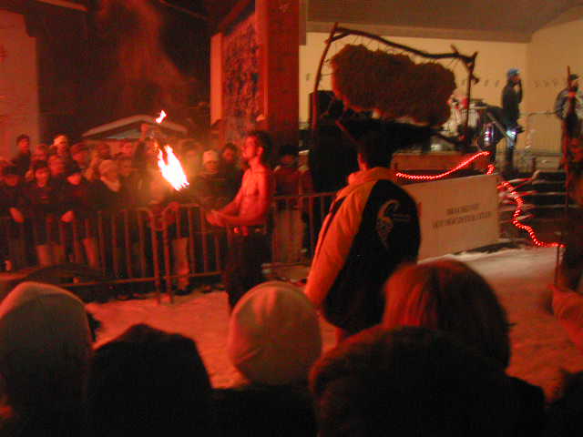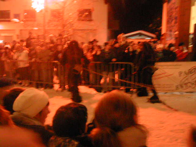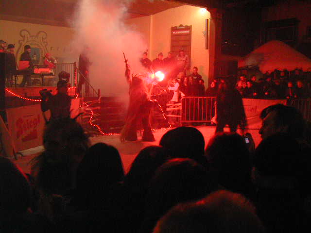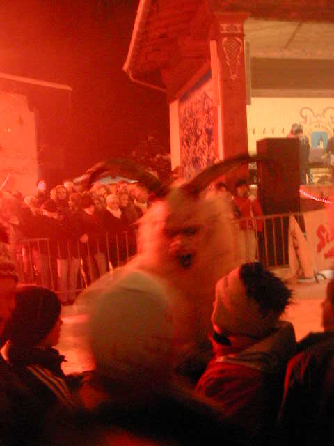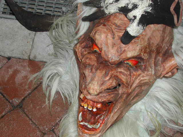 begleitet von Schreckgestalten , Teufel und Tiermasken.