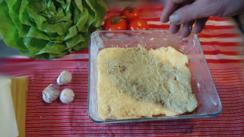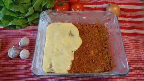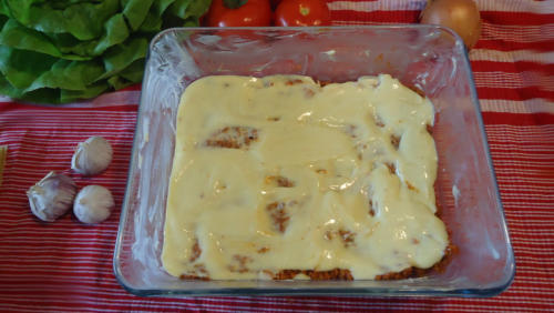 Jetzt kommt eine Schicht Bechamelsoße darüber