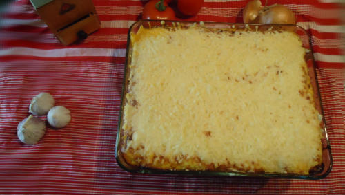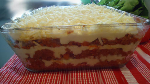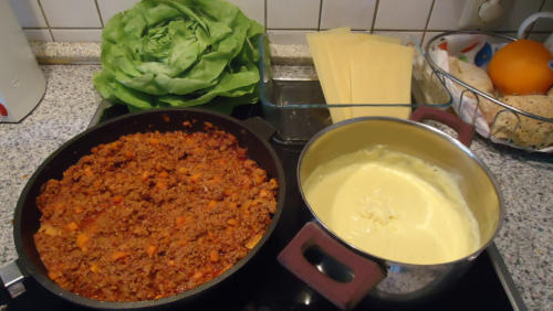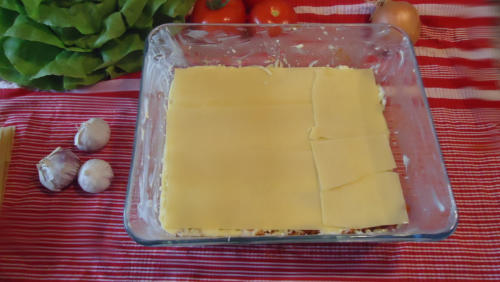 Nun wieder Lasagne Platten und immer weiterschichten bis die Form voll ist