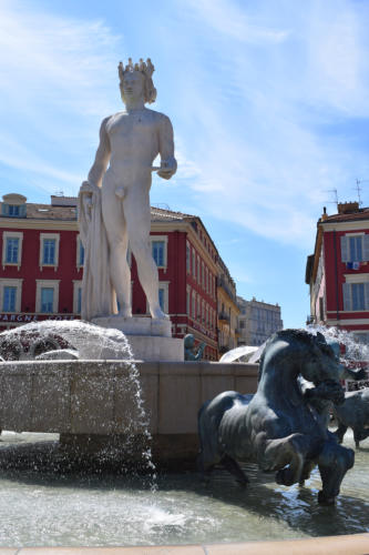 Auf dem Platz Massena steht der Springbrunnen „Fontaine du Soleil „