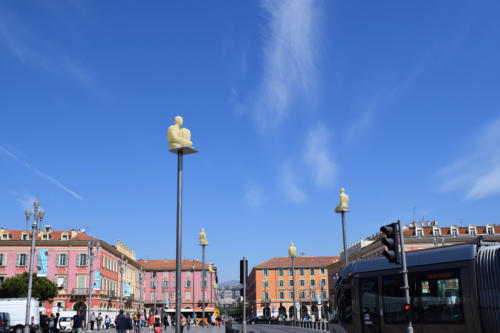 Gegenüber des Fontaine du Soleil findet man eine Statuengruppe des spanischen Künstlers Jaume Plensa das Kunstobjekt heißt